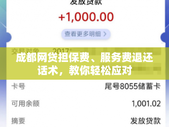在成都,网贷行业的发展可谓是如火如荼。随着网贷市场的火热,一些不良网贷平台也趁机出现,收取高额的担保费、服务费,让借款人苦不堪言。当遇到这种情况时,我们该如何应对呢?下面,就让我来为大家分享一些成都网贷担保费、服务费退还话术,教你轻松应对。