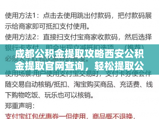 在咱们中国,公积金是个好东西,不少人都想提取公积金来缓解一下生活压力。今天,我就给大家带来一份成都公积金提取攻略,顺便介绍一下西安公积金提取官网查询的方法,让大家轻松提取公积金。