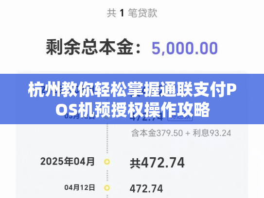 在繁华的杭州,无论是繁华的商业街区,还是热闹的旅游景区,你总能看到POS机的身影。作为现代支付的重要工具,POS机已经深入到我们生活的方方面面。今天,就让我带你一起轻松掌握通联支付POS机的预授权操作,让你在杭州畅享便捷支付体验。