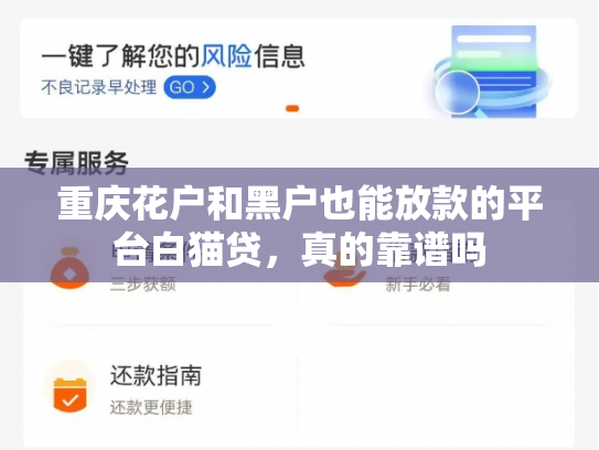 近年来,随着金融市场的不断发展,各类贷款平台层出不穷。其中,一些平台为了吸引客户,推出了针对特定人群的贷款产品,如重庆花户和黑户也能放款的平台——白猫贷。这个平台真的靠谱吗?下面,我们就来详细了解一下。