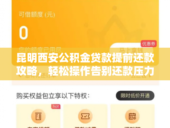 昆明西安公积金贷款提前还款攻略可以帮助大家轻松操作,告别还款压力。在提前还款之前,一定要做好充分的准备,确保还款过程顺利。