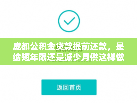 在成都,公积金贷款已经成为众多市民购房的首选贷款方式。但是,随着经济状况的变化,有些借款人可能会考虑提前还款。提前还款是缩短年限还是减少月供更划算呢?下面,我们就来详细分析一下。