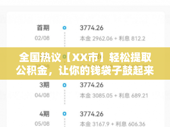 最近,全国各地的朋友们都在热议一个话题——XX市公积金提取政策新变化!是的,你没听错,XX市住房公积金管理中心推出了一项便民新政策,让公积金提取变得更加轻松便捷。这无疑让不少市民的钱袋子鼓了起来,下面我们就来详细了解一下这项新政策。